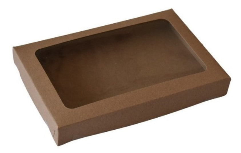 ENVASE RECTANGULAR PLANO KRAFT/VENTANA 28x17,5x4cm 25 UNIDADES