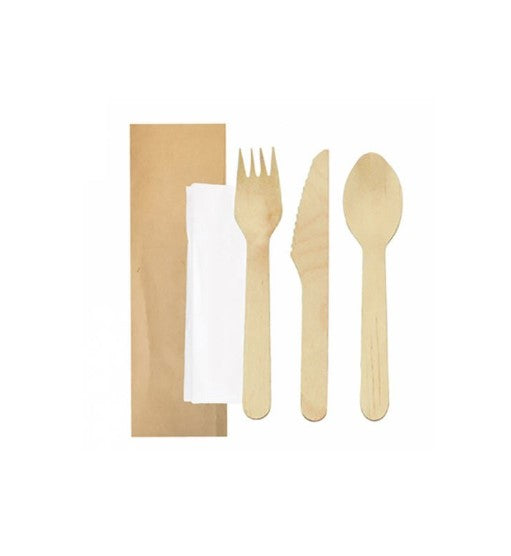 PACK CUBIERTO MADERA (Tenedor+Cuchillo+Cuchara+Servilleta) 280 UNIDADES